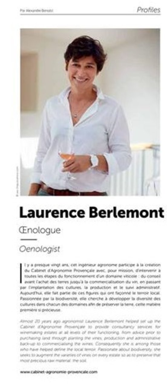 Laurence Berlemont, la star des oenologues Article de Var Matin publié en septembre 2021