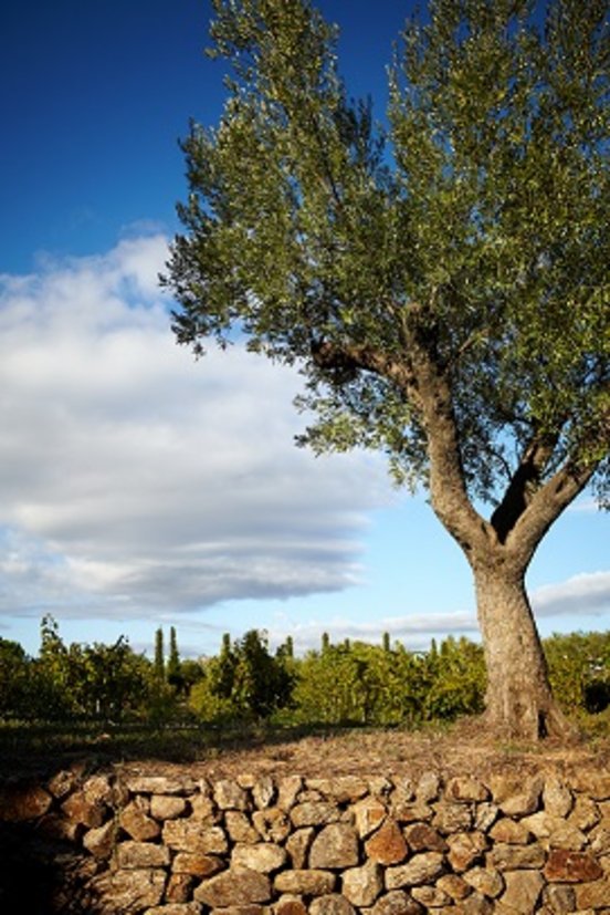 Pas de barrière, pas de clôture, pas de portail, le jardin trouve un prolongement naturel dans la vaste étendue de vignes à peine délimitée par des bosquets d'arbres et arbustes...